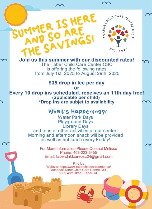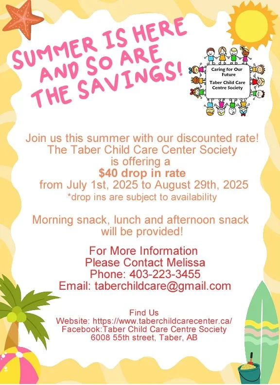 Over the past 11 years, all three of our children have attended the Taber Child Care Centre, starting at just 12 months old and staying until they aged out. We have been incredibly grateful for the care, support, and nurturing environment provided by the staff. Our children have always been happy and excited to go each day, which speaks volumes about the quality of care they receive.